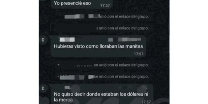 “Hubieras visto cómo lloraban las manitas”, escribió el sujeto en un diálogo por WhatsApp. Así describió la desesperación de las amigas al sufrir la tortura, y presenciar la de las demás.