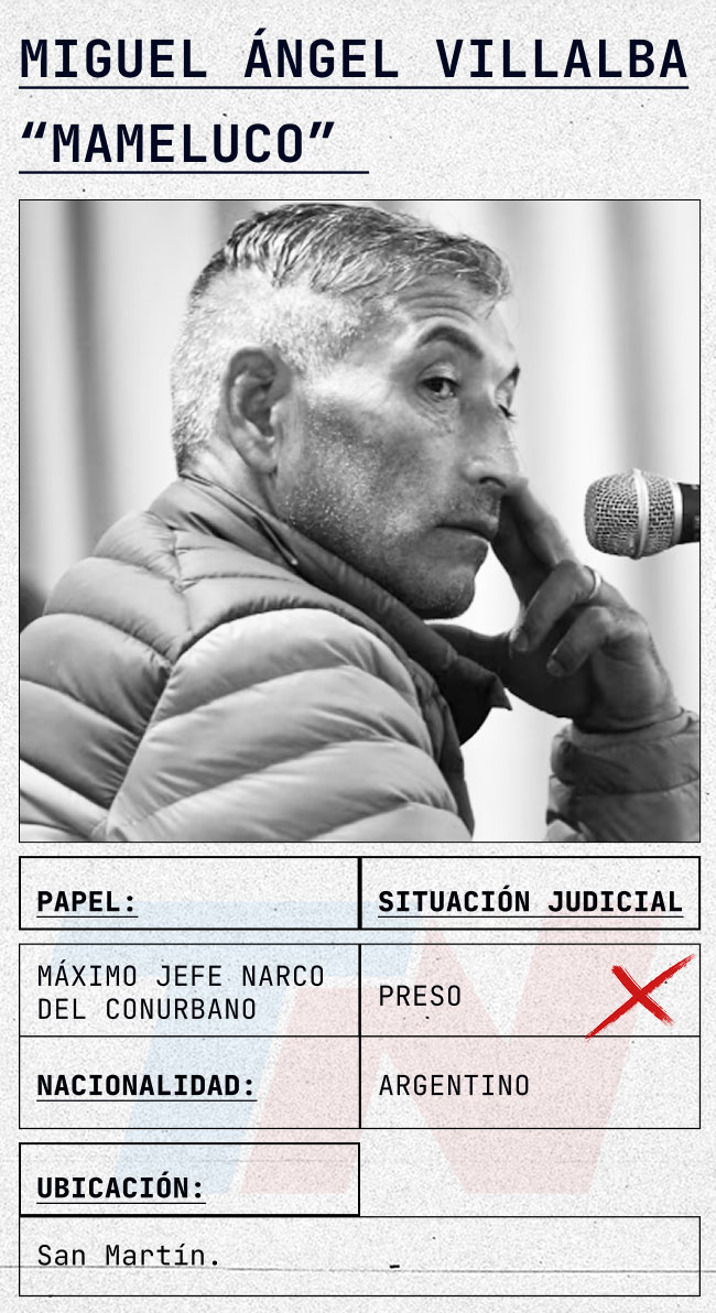 Otro de los nombres que nunca desaparece del radar es el de Miguel “Mameluco” Villalba, el histórico capo de San Martín que en 2010 quiso ser intendente y hoy cumple una condena unificada de 23 años de prisión.