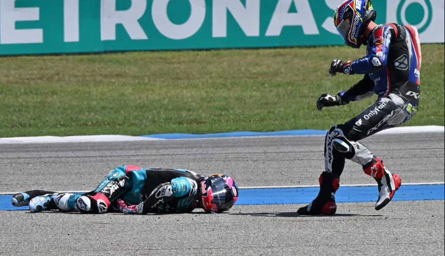 En el sprint de Moto2 en Tailandia, se vivió un tenso momento tras un accidente que preocupó a todos: David Alonso, piloto colombiano-español de 19 años, quedó inconsciente en la pista tras un golpe de otra moto y debió ser retirado en camilla.