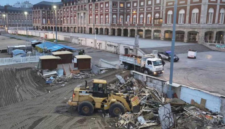 Con maquinaria pesada y bajo custodia de las fuerzas de seguridad, durante la madrugada se desmontaron las estructuras que funcionaban como puestos comerciales. Para la mañana, el tradicional paseo de compras de la Rambla ya había quedado completamente despejado, con restos de escombros en el lugar.